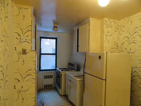 This New York City remodel includes refinished floors, new doors and moldings. We changed the his and hers closet to a walk in. The new bath room is tiled with travertine and has a glass enclose. The new larger kitchen includes 42 inch high wall cabinets, stainless steel appliances, a porcelain tile floor and a Black Galaxy custom counter top.
