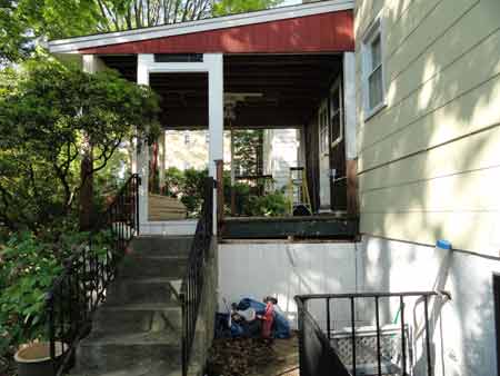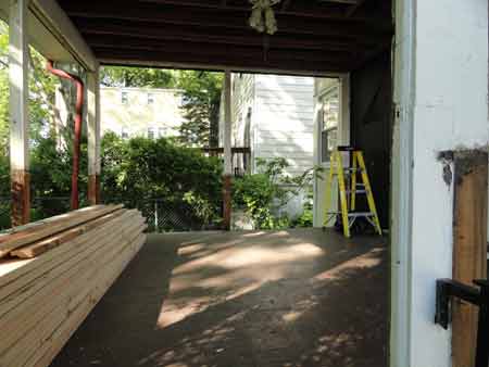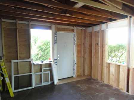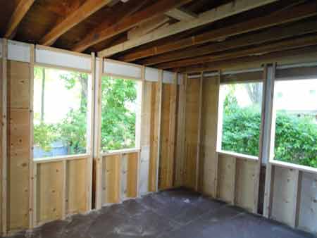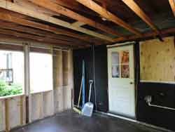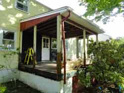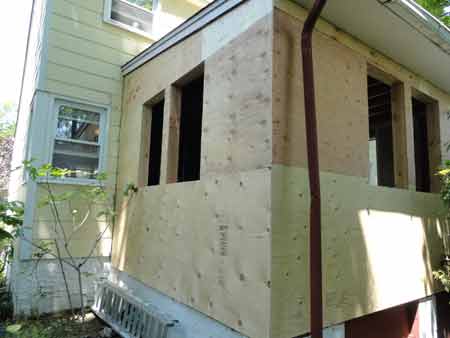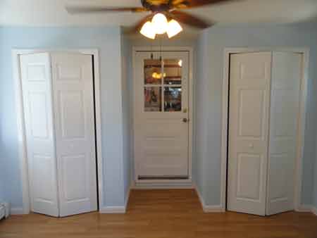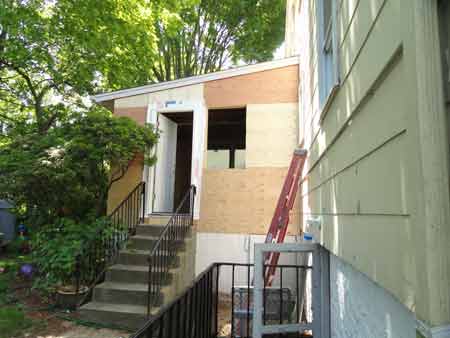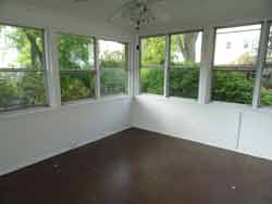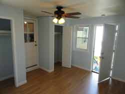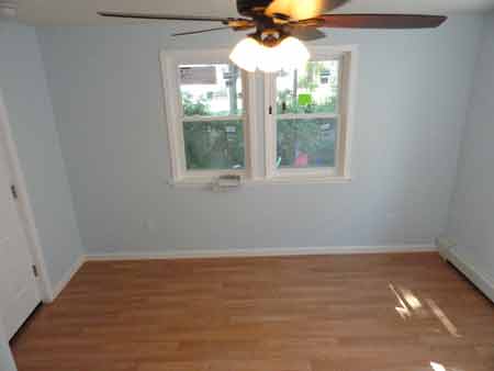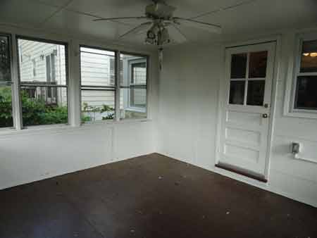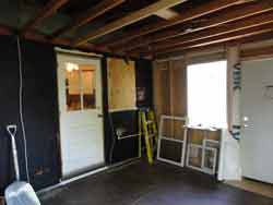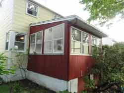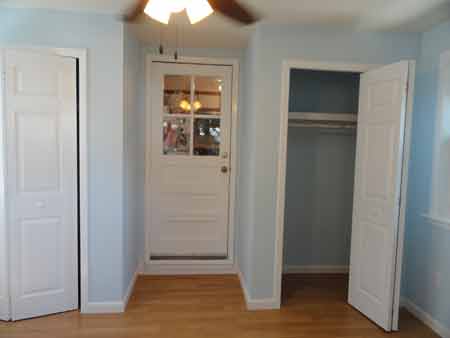 Scope of project: BLD turned this 3 season room into a cozy master bedroom with his and hers closets. After demoing the windows and walls, we reframed for adequate insulation and window placement. The room now has new electrical wiring, lighting, baseboard heat and Laminate flooring inside, with new energy efficient windows and vinyl siding outside.